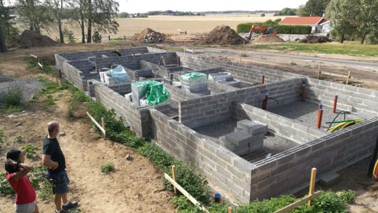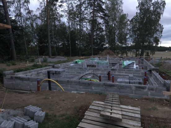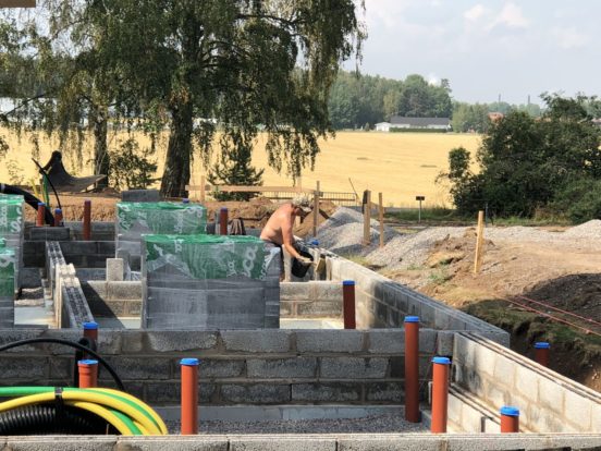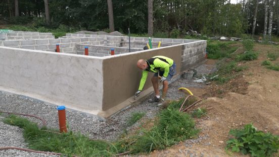 Egentligen är det ett stort HURRA! Sista stenen är på plats för grunden ? Här putsar uffe nu grunden med avrinningskant längst ned. Under marknivå ska nu kall asfalt och en skyddsfilm läggas på. Putsning kommer även ske på vissa… Fortsätt läsa →