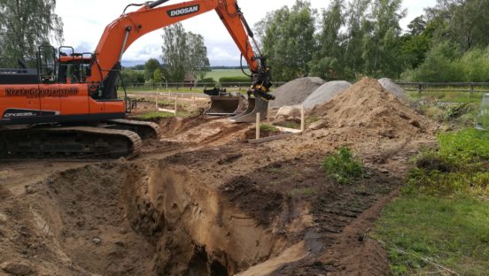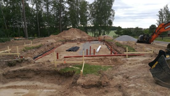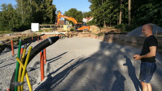 Avloppspumpostation på plats. Återstår; rörläggning, en påskrift, lång grävning, lite eldragning. Sedan kan Tekniska Verken få en massa ??