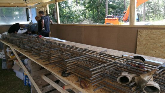 Kontrollmätningar av att avloppsrör och radonrör står enligt ritning.