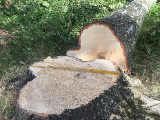 En del var så ruttna inne i kärnveden att vi tordes inte ha dem kvar. Några var dock fina så dem kommer vi göra plankor av.