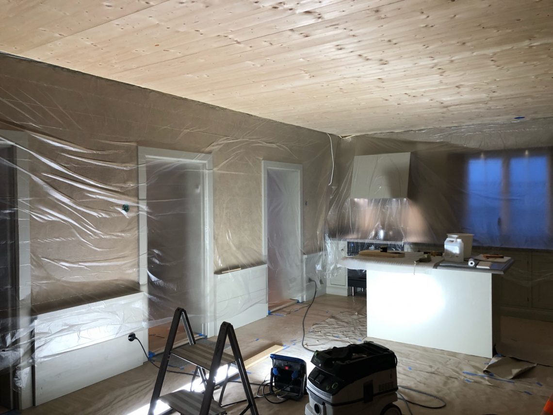 Förberedelser för handhyvlade taket.